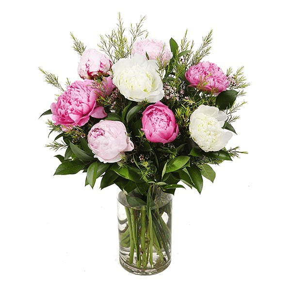 8 peônias multicoloridas em tons de rosa e branco, cercadas por excelentes enchimentos verdes frescos. As grandes flores trarão o espírito da primavera e do verão em sua casa e escritório. Todos os destinatários ficarão impressionados com as flores espetaculares e como sua aparência deslumbrante. Fabricado à mão com cuidado e amor por nossos especialistas, este arranjo vem em um grande vaso de vidro cilíndrico e claro e chegará exatamente como você vê na foto. Coloque esta criação artesanal de tirar o fôlego em um local bem iluminado para impressionar seus convidados.